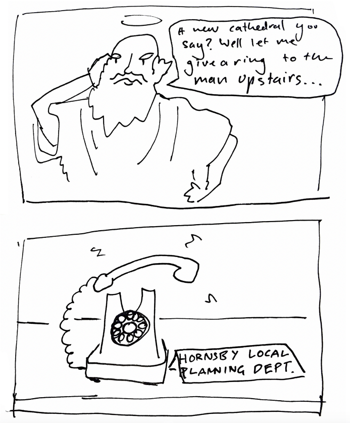 New details in the Hornsby Cathedral Precinct Masterplan, in the works since 2022, show the cathedral would eschew the typical Neogothic design and instead be a modernist structure.